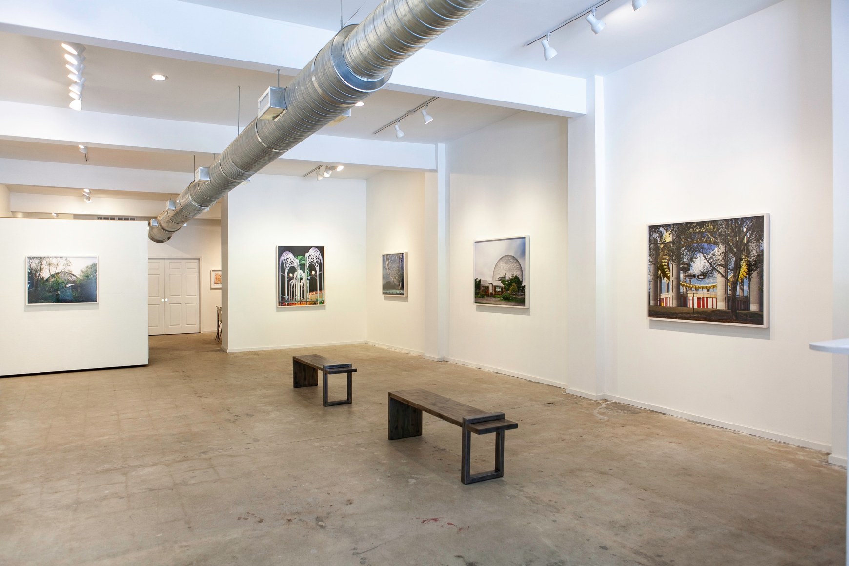 Doskow began photographing the remaining art, architecture, and landscape of World’s Fairs after traveling to Spain, the idea sparked by the surreal, half-abandoned postmodern remains of the 1992 World Expo in Seville. She then began researching for what would become this massive, now decade long and growing project, quickly discovering the rich, dense subject matter that crossed lines of not only architecture, but also culture, design, preservation, and nationalism. Doskow takes a meditative approach to capturing the sites, using a large format camera and painstakingly perfecting the images in post-production, sometimes spending up to a year to complete a print. Often Doskow will return to a site repeatedly with years in between shoots, revealing the changes, both subtle and sudden, which occur on a specific urban site over time.