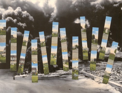Tracey Morgan Gallery is pleased to present What Goes on Here, a solo exhibition of works on paper by Asheville based artist, Kirsten Stolle. The exhibition features three series: Chemical Bouquet, By the Ton, and Faith, Hope, & $5,000. A reception for the artist will be held on Friday, December 1st, from 6-8 p.m. Stolle’s carefully composed collages and text-based works examine the influence of agribusiness and biotech companies on our food supply. Mining source materials such as 20th century medical books, agricultural equipment catalogs, and archival photographs, Stolle’s evocative work responds to corporate propaganda and challenges industry narratives. Drawing on 19th century floral still life paintings, Stolle’s Chemical Bouquet collages comment on the use of harmful herbicides and the genetic modification of plants by global chemical corporations. Victorian flower bouquets have been subverted and populated with odd, unsettling imagery⎯all elements associated with Monsanto Chemical Company products. Bloated cow udders, syringes, 18-20th century medicinal and botanical plants (corn, soy, rapeseed, cotton), and aspirin pills and bottles overflow from vases wrapped in Agent Orange barrels. Stolle’s striking, large-scale ornately framed works offer a considered critique of chemical intensive farming practices. Using collage, silkscreen, vintage postcards and archival photographs, By the Ton spotlights the practice of corporate greenwashing and exposes the troubling history of the agrichemical industry. Stolle extracts words and phrases from chemical company advertising, superimposing text over historical photographs. These sparse works, layered with multiple meanings, reframe and recontextualize corporate messaging. In the debut of her new series, Faith, Hope, & $5,000, Stolle draws on the history of found poetry and manipulates both typography and graphic elements to create non-narrative poems. Using the appendix extracted from a mid-1970’s corporate history of Monsanto Chemical Company, Stolle reassembles each page to explore found text in a visual format. The final sixteen-piece installation made up of excised and pasted chemical names, alludes to the interplay of image and text, and gives new unexpected content to the original material. Born in Newton, Massachusetts in 1967, Stolle relocated to Asheville after 19 years in the San Francisco Bay Area. Her work is included in the permanent collections of the San Jose Museum of Art, (San Jose, CA), Crocker Art Museum, (Sacramento, CA), and the Minneapolis Institute of Art, (Minneapolis, MN). Select solo exhibitions include NOME Projects (Berlin), Southeastern Center for Contemporary Art (NC), and the Turchin Center for Visual Arts (NC). Her work has been published in numerous publications including Made in Mind Magazine, Poetry Magazine, Spolia Literary Magazine and New American Paintings. She is a recipient of a PollockKrasner Foundation Grant, a Dave Bown Project Award, as well as grants from the San Francisco Arts Commission, Artists’ Fellowship Inc., Puffin Foundation, Change Inc., and the Creative Capacity Fund.