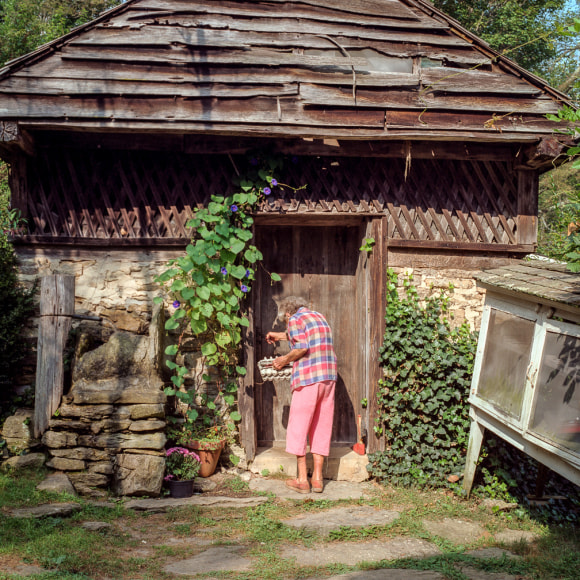 Ella Early, entering the spring house behind the Big House at Hickory Nut Gap Farm, September 2005, 2005