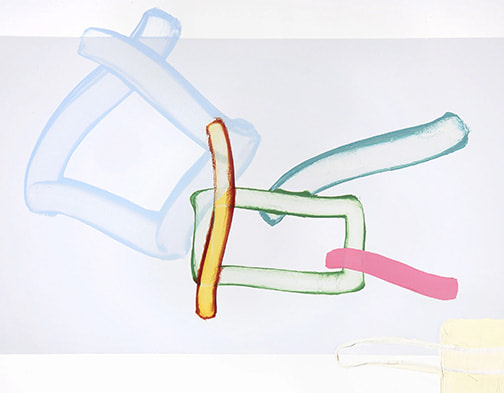 Louden’s work investigates limits—both actual and psychological—and the space in which constraint becomes possibility. The Barriers paintings evoke edges, thresholds, and the complex interplay between openness and division. The Untitled series explores fragile architectural form, color, and gentle quietness in the gestures themselves. The wall installation in Barriers to Entry transforms one of the gallery’s walls into a site of engagement, inviting viewers to navigate, literally reflect, and imagine themselves in a new environment.